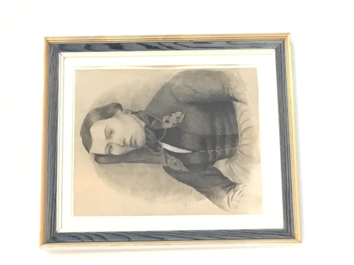 Blýantsmynd í ramma af Sólveigu Jónsdóttur (1840-1928), húsfreyju á Ytra-Hvarfi.