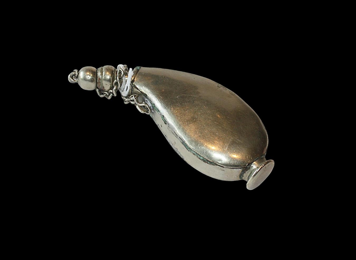 Tóbaksbaukur (úr silfri).Átti Finnur Sigurðsson ,f.1869 í Þingnesi í Borgarfirði, ólst upp í Bæ. Bjó m.a. á Heggstöðum í Andakíl ,d. 1923. Kona hans Þorbjörg Þorleifsdóttir ,f.1860 í Vogseli , hjáleigu frá Vogi á Mýrum ,d. 1943. Finnur átti baukinn lengi ,að sögn dóttur hans Guðríðar Sigurborgar ,húsfreyju á Akranesi (konu Kjartans Helgasonar ,skipstjóra) sem gaf byggðasafninu baukinn í apríl 1970.