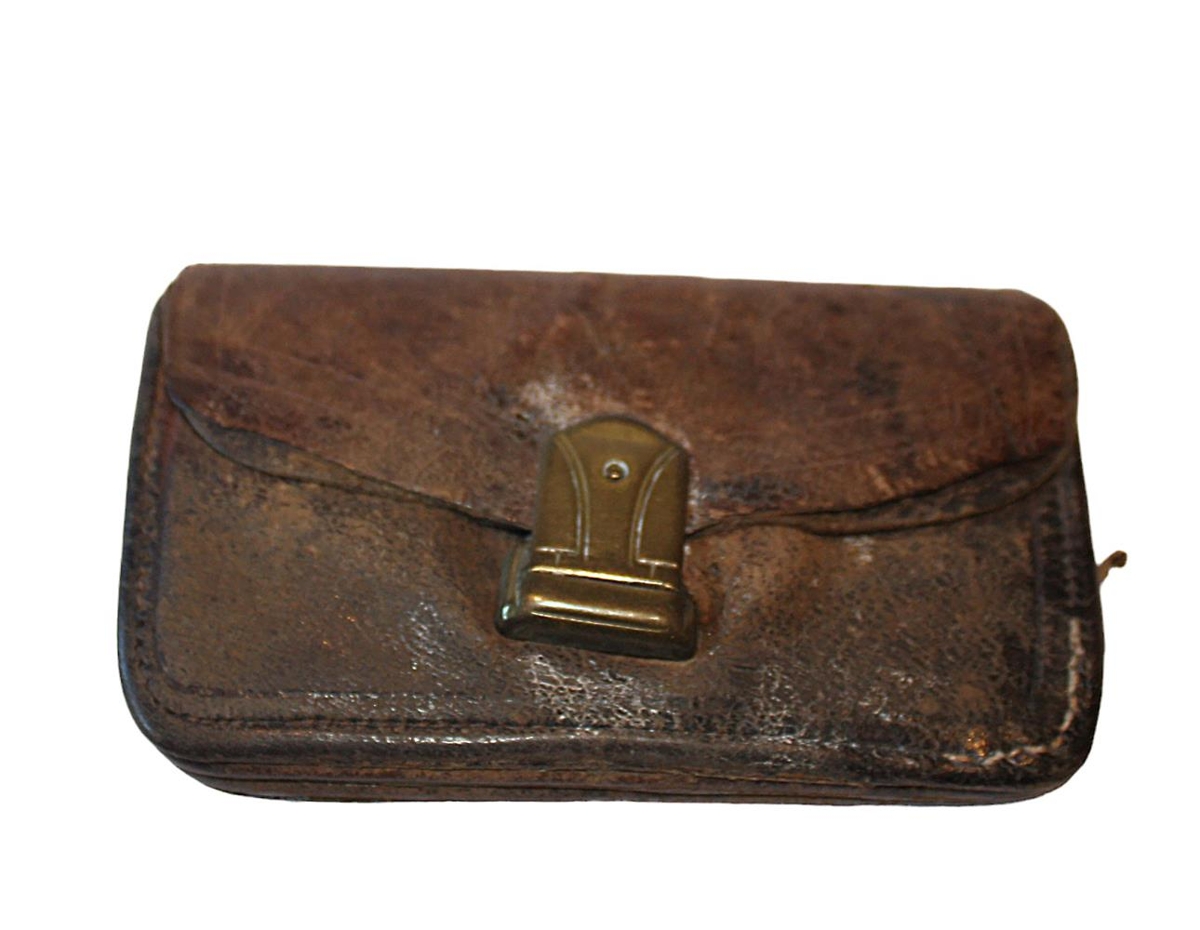 Peningabudda : séra Bjarna símonarsonar ,prófasts á Brjánslæk ,f.9/5 1867 á Bjarteyjarsandi á Hvalfj.strönd, d.16/3 1930. Magnús Símonarson ,bóndi á Stóru-Fellsöxl, bróðir séra Bjarna ,eignaðist budduna eftir hann og gaf byggðasafninu í júní 1978.Er brún á lit úr leðri með smellu og 4 hólfum. Stærð :Lengd 10,5 cm og breidd 6 cm