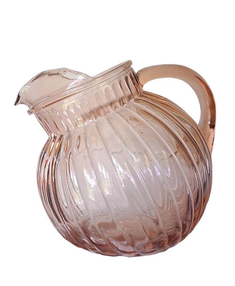 Mjólkurkanna úr rauðleitu gleri.Úr búi Guðbjargar Sigurðardóttur á Akri. Gef: Guðbjörg Sveinbjarnardóttir, f.25 júlí 1934, Vallarbraut 13 á Akranesi.