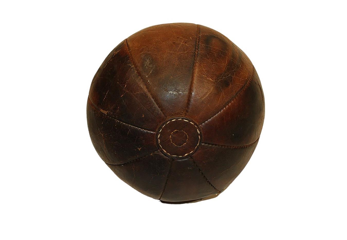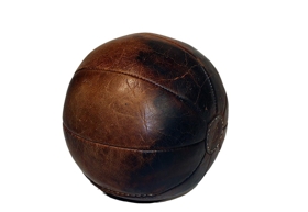 Þetta er leðurbolti sem notaður var við æfingar, fyrst í íþróttahúsinu við Laugarbraut og síðan í íþróttahúsinu við Vesturgötu, Akranesi. Þetta er brúnn leðurbolti, saumaður, og hefur verið bættur á einum stað. Ummál boltans er 76 cm.