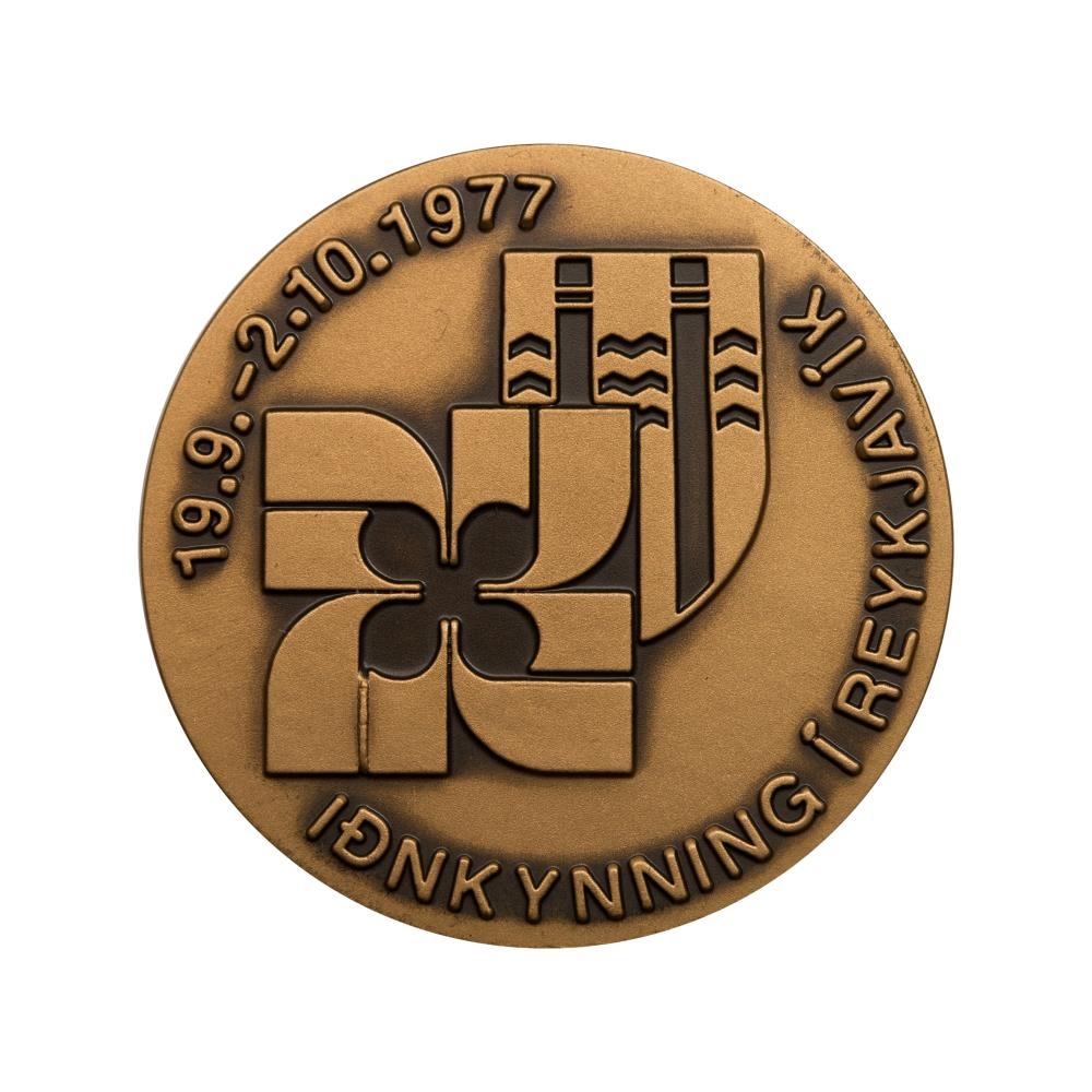 Þessi minnispeningur var búinn til fyrir Iðnkynninguna sem haldin var í Reykjavík árið 1977.