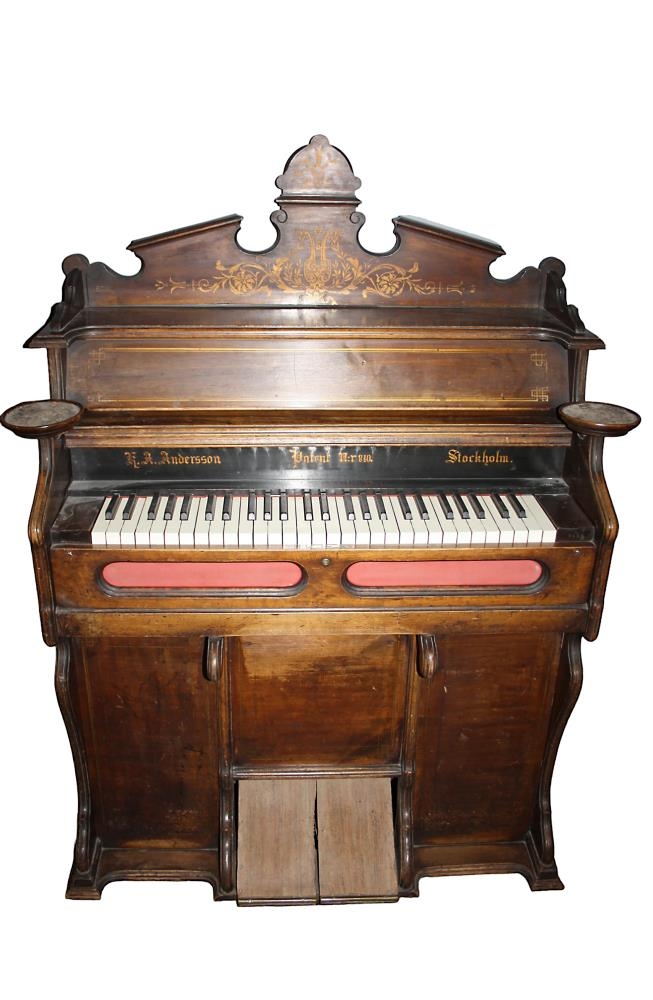 Orgel úr búi læknishjónanna Ingibjargar Ísleifsdóttur og Ólafs Finsen. Ólafur var héraðslæknir á Akranesi í tæp 44 ár samfleytt, frá 13.jan.1894 til okt.1937. Eignuðust orgelið árið 1896 hið sama ár og þau létu reisa hús sitt (við Vesturgötu ) er þau áttu heima alla tíð eftir það .Ingibjörg var f.12/9 1872, dóttir Ísleifs prests Gíslasonar í Arnarbæli, d.16/ 2 1936.Ólafur var f.17/9 1867 í Reykjavík, d.10/10 1958. Læknishjónin voru bæði söngelsk og stuðluðu að auknu sönglífi á Akranesi á sinni tíð.Ólafur læknir var kjörinn heiðursborgari Akraneskaupstaðar 1947.Börn læknishjónanna afhentu byggðasafninu orgelið til eignar og varðveislu í ág.1973.