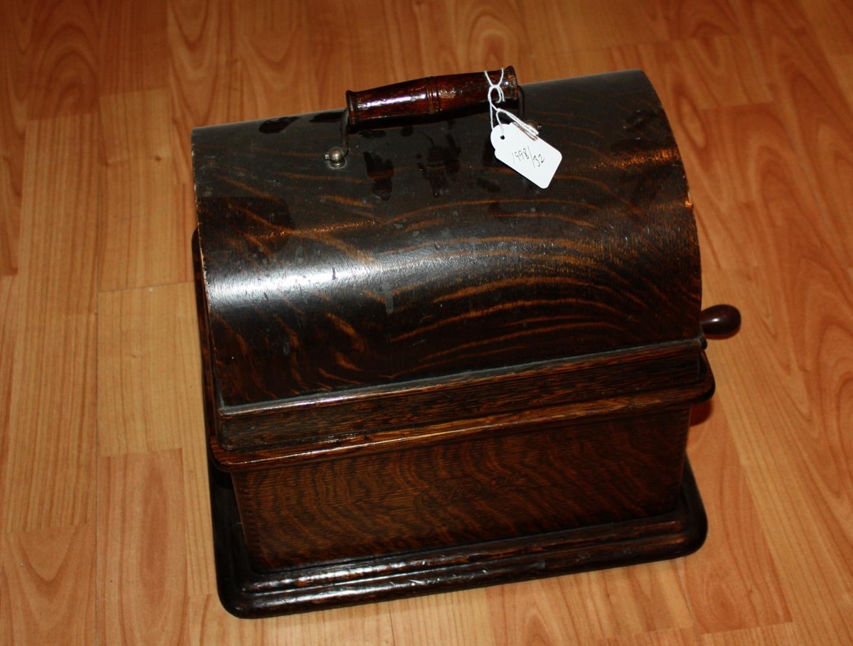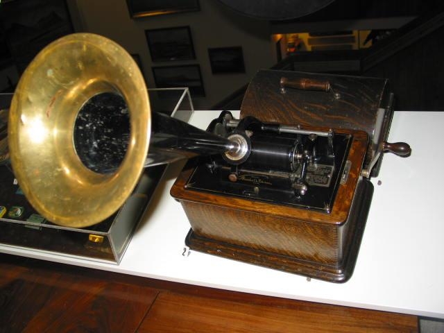 Phonagraph af gerðinni EDISON. made in USA .Svona gekk Thomas A.Edison "faðir grammófónsins" endanlega frá honum.Þessi grammófónn er sennilega frá árinu 1905 eða eldri. Gyða L.Jónsdóttir frá Kirkjuhvoli á Akranesi gaf Byggðasafninu grammófóninn vorið 1969