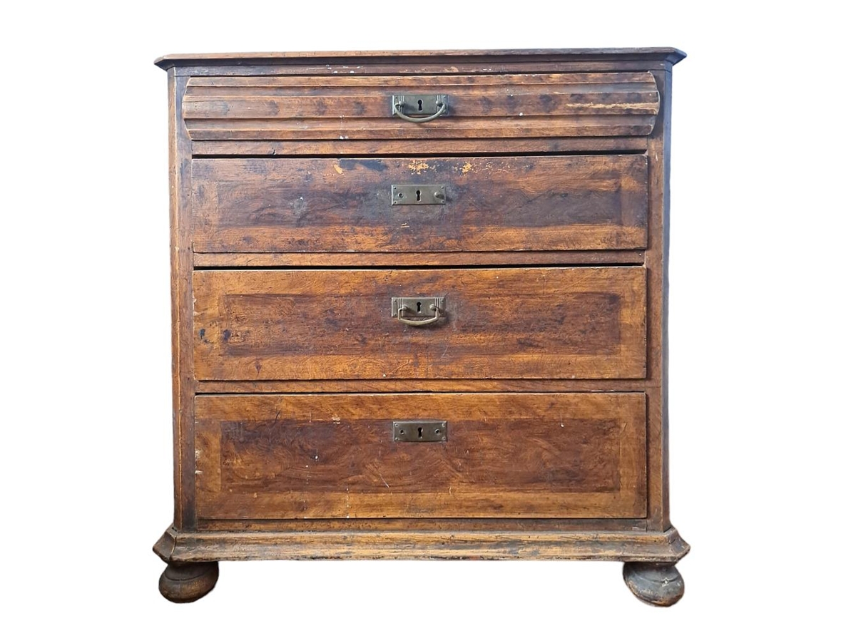 Komóðan er úr búi hjónanna Hólmfríðar Guðrúnar Jónsdóttur og Klemensar Jónssonar í Mávahlíð í Lundarreykjadal. Þau bjuggu i Mávahlíð yfir 40 ár (frá 1914 til 1957),áttu heima á Akranesi síðustu æviárin. Fóstursonur þeirra ,Steinólfur Jóhannesson, gaf Ólafi Guðmundssyni, áður bónda í Miðvogi í Innri-Akraneshreppi,kommóðuna ,að fósturforeldrum sínum látnum,en hann gaf byggðasafninu kommóðuna í ágúst 1964.