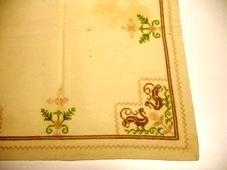 krosssaumsmunstri. Í dúknum eru blettir og göt. Guðrún Magnúsdóttir saumaði