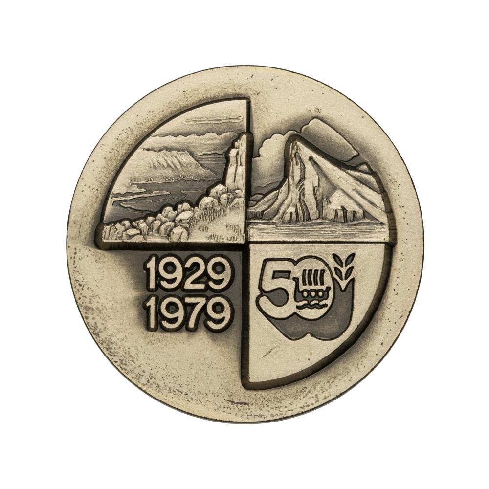 Þessi minnispeningur var búinn til af Neskaupstað í tilefni af 50 ára kaupstaðarréttinda bæjarins.