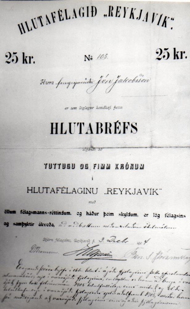 Hlutabréf upp á 25 krónur í hlutafélaginu "Reykjavík".