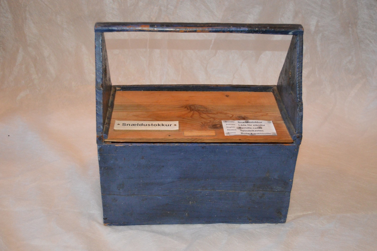 á Hnjóti og smíðaður af manni hennar, Ólafi Magnúsi. Stokkurinn er blár