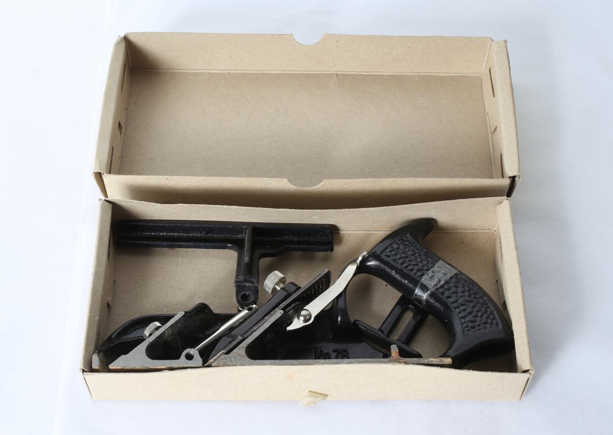 Handhefill af gerðinni Stanley. Lítið notaður og enn í upprunalegum kassa. Á kassanum stendur "Stanley No. 78 made in England. Rabbet plane 38 mm - 255 mm. Made by Stanley Tools. The Stanley works Limited Sheffield England". Kom úr búi Stefáns Jónssonar, Freyshólum.