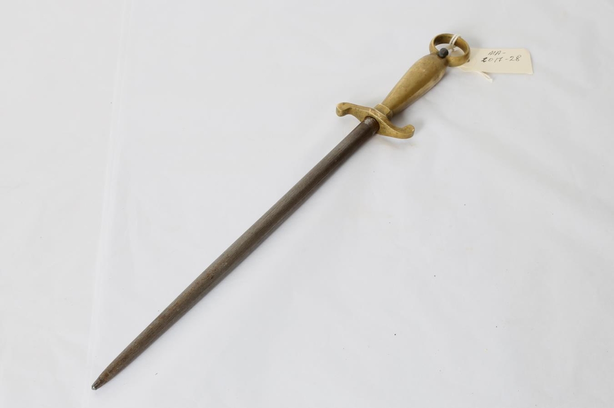 Stál með skafti úr messing. Á stálinu sjálfu stendur "Volk - o - Stahl". Var í eigu Stefáns Jónssonar frá Freyshólum.