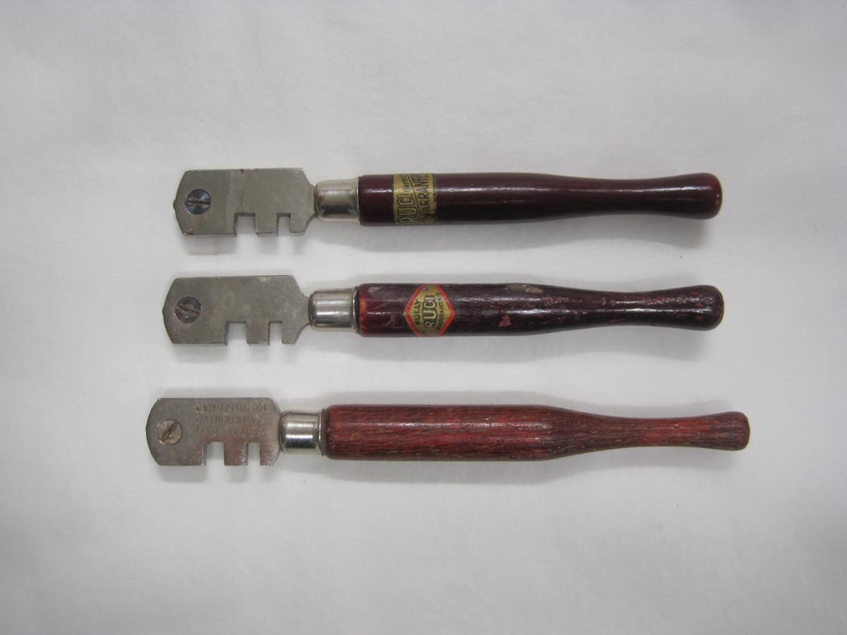Glerskeri. Þrjú stykki. Tveir eru af gerðinni RUCI frá Þýskalandi og á þeim þriðja stendur: GOODELL-PRATTCO Greenfield Mass. Made in USA. Voru notaðir til að skera gler í hús í Stykkishólmi.