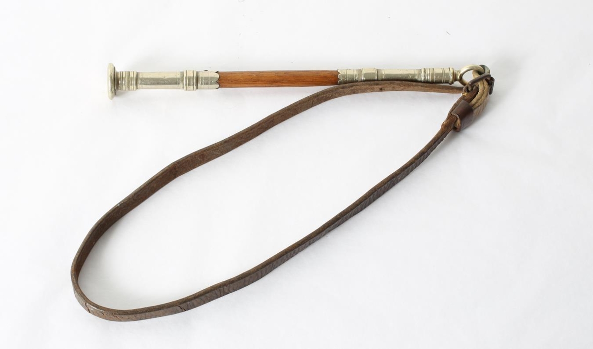 Svipa/pískur sem Guðrún Margrét Pálsdóttir átti. Er með ógreinilegri áletrun enda skaftsins sem virðist vera "A". Gunnar Guttormsson gefandi hélt að það ætti að vera GMP.