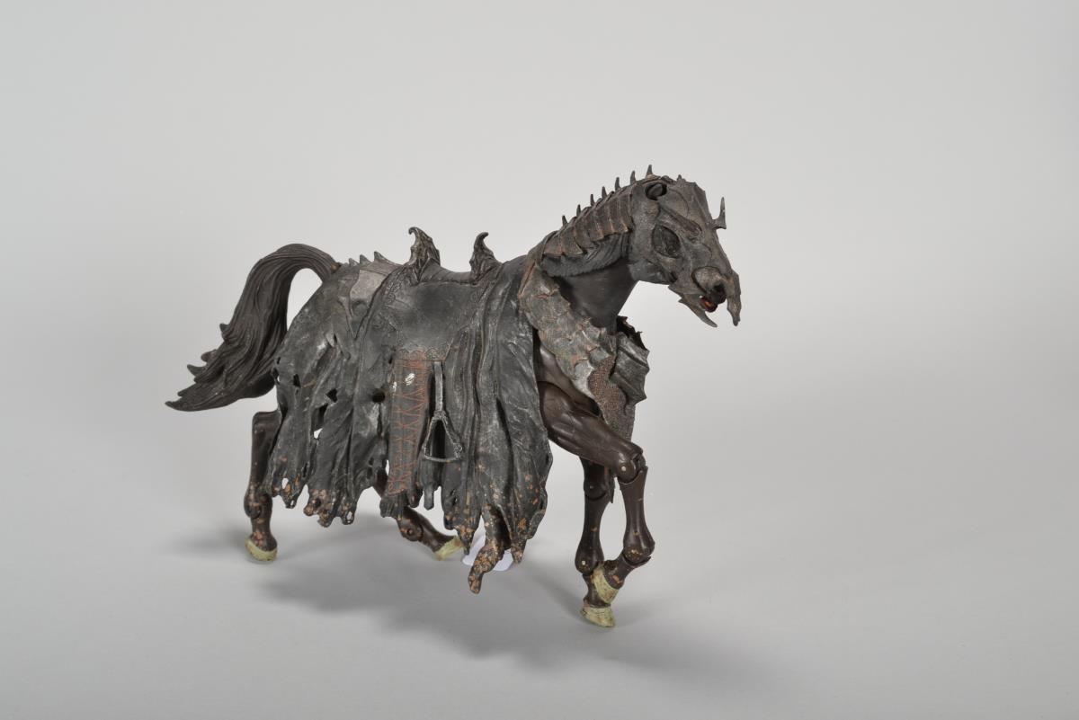 Hestur með Fantasíu leðurbrynjum sem verja allan skrokkinn og höfuðið. Ef ýtt er á takka á vinstri lendinni þá hreyfast framfæturnir. Fylgir riddara #BYR 2017-690