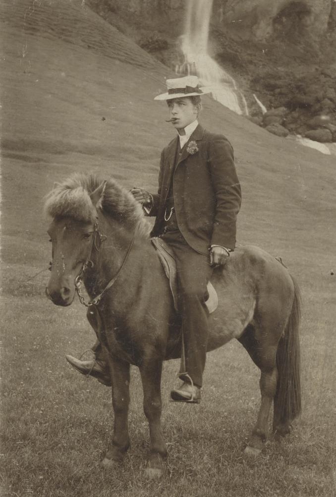 Helgi Helgason Bergs á hestbaki við Foss á Síðu.