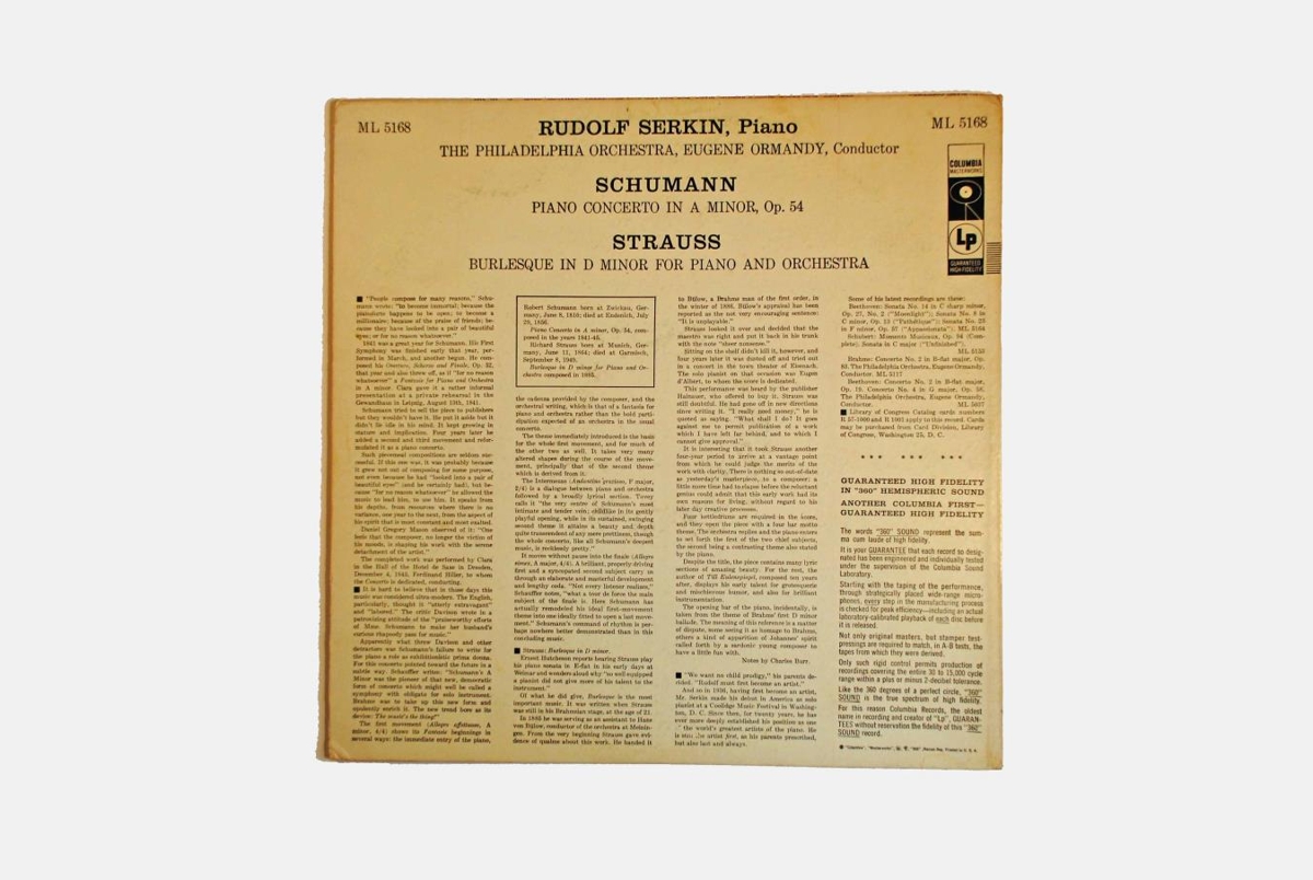 Rudolf Serkin leikur píanóverk eftir Schumann og Strauss við undirleik The Philadelphia Orchestra undir stjórn Eugene Ormandy.