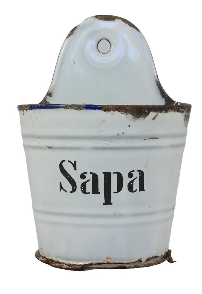 ámálað SÁPA, hékk á vegg .Víða brotið upp úr emanleringunni og botninn