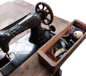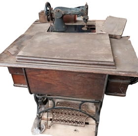 Skósaumavél SINGER, úr eigu Jóns Guðmundssonar ,skósmiði á Akranesi. Var í vörslu frænda hans í Reykjavík frá því um 1975, afhent safninu í júlí 1989.