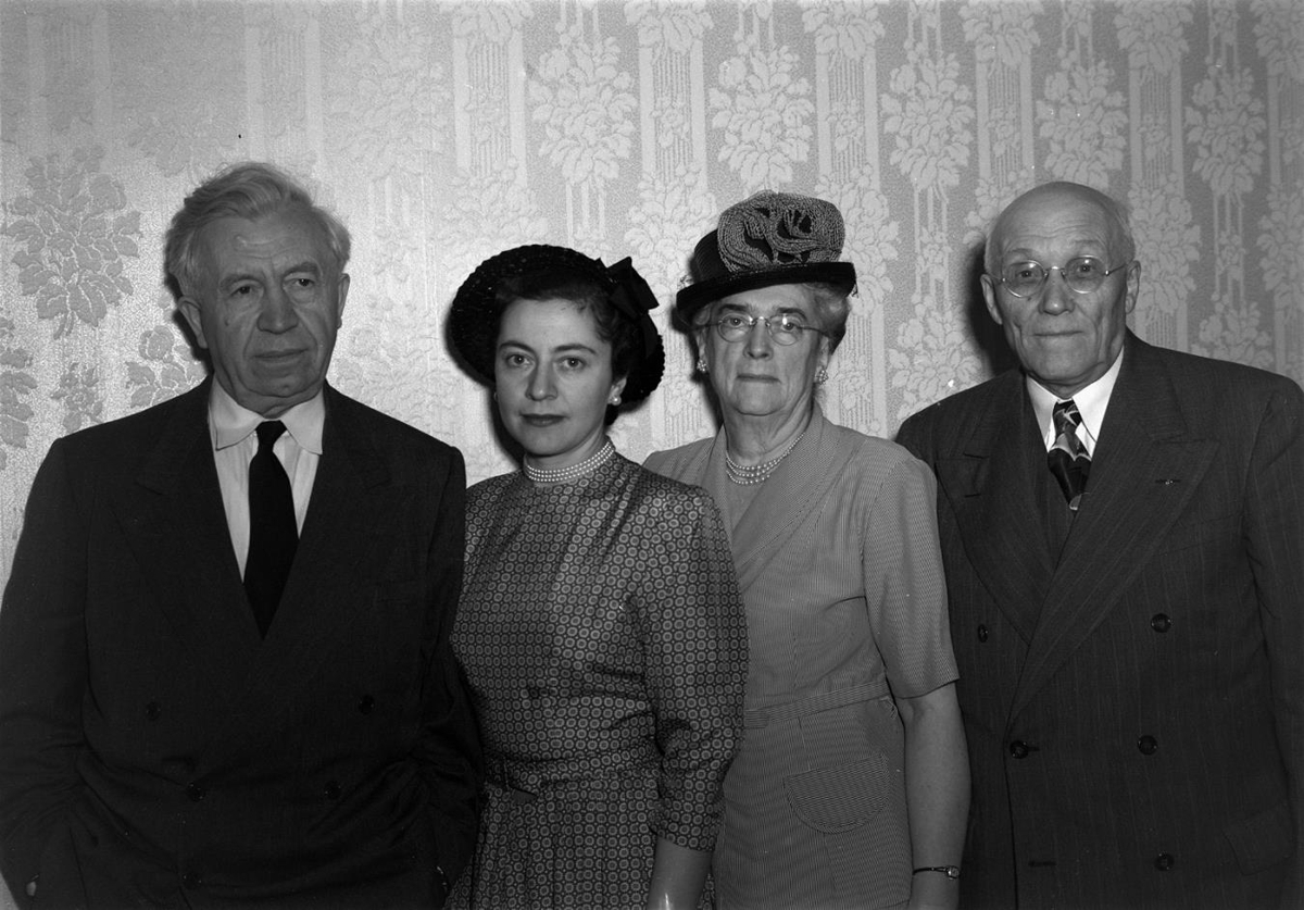 Vilhjálmur Stefánsson landkönnuður og kona hans Evelyn standa við hlið Garðars Grímssonar og konu hans. 1. Vilhjálmur Stefánsson, 2. Evelyn Stefánsson, 3. kona Garðars, 4. Garðar Grímsson.
