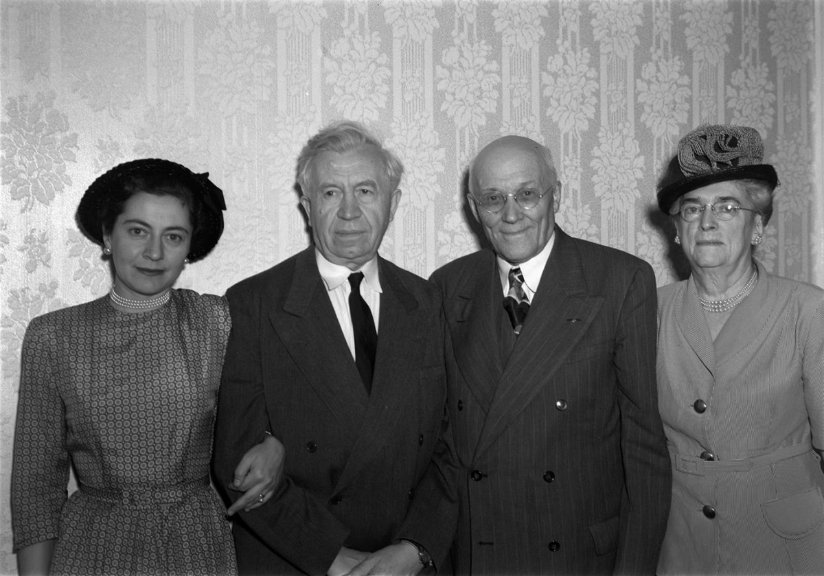 Vilhjálmur Stefánsson landkönnuður og kona hans Evelyn standa við hlið Garðars Grímssonar og konu hans. 1. Evelyn Stefánsson, 2. Vilhjálmur Stefánsson, 3. Garðar Grímsson, 4. kona Garðars