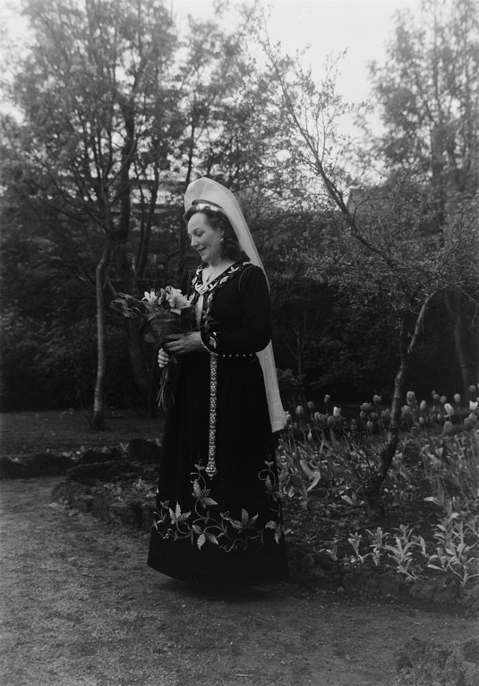Fjallkonan Anna Guðmundsdóttir leikkona í Alþingisgarðinum. Hátíðarhöld þann 17. júní 1956