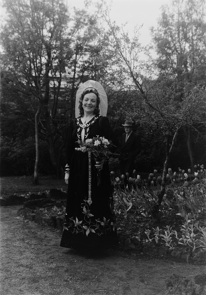 Fjallkonan Anna Guðmundsdóttir leikkona í Alþingisgarðinum. Hátíðarhöld þann 17. júní 1956