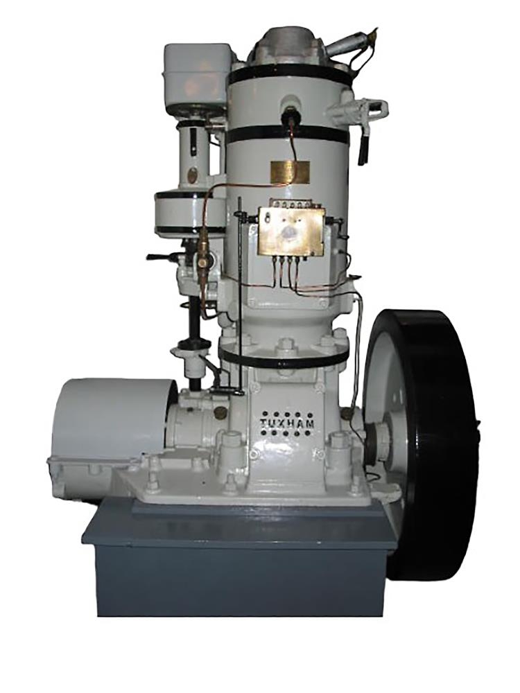 TUXHAM-glóðarhausvél ,upphaflega úr báti ,trúlega Skírni AK ,en var lengi notuð í Dráttarbraut Þorgeir & Elllert h/f á Akranesi við að draga upp báta í dráttarbrautinni. Gef: Þorgeir & Ellert h/f.