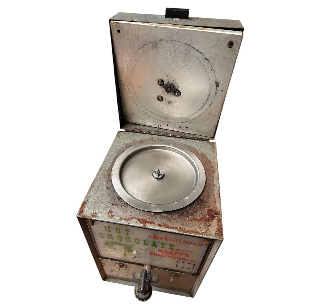 Hitunarpottur (Kakóvél). Til að hita í kakó til sjálfafgreiðslu í matsölu Guðbjargar Vilhjálmsdóttur matráðskonu frá Þinghól á Akranesi (f.4 des.1903) en hún rak matstofu á Akranesi í áratugi. Gef:Hendrik Steinsson ,vélvirki á Akurgerði 2 ,Akranesi