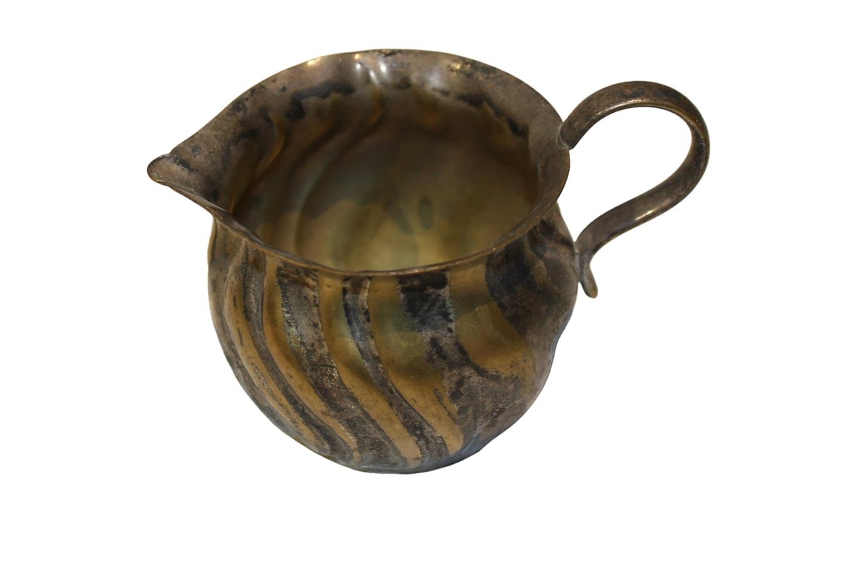Rjómakanna, sykukar og bakki frá fyrstu búskaparárum Jóns M.Guðjónssonar og Lilju Pálsdóttur. Er úr silfurhúðuðum málmblendingi.