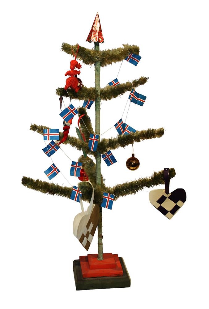 Jólatré úr eigu Jóhannesar Ingibjartssonar ,byggingafræðings á Akranesi (f.8 júní 1935). Tréð fékk hann að gjöf frá foreldrum sínum á jólum 1936, búðarkeypt í Reykjavík og var það notað á því heimili og síðar á heimili Jóhannesar frm til 1990. Tréð eða greni þess er myndað úr klofnum ,grænlituðum fjöðurstöfum, sem vafnir eru um vír. Á trénu er ljósasería ,sem upphaflega var með fleiri ljósastæðum,en á stríðsárunum,þegar erfiðlega gekk að fá perur keyptar var þeim fækkað nokkuð að því marki sem ekki tókst að endurnýja þær. Gef: í des 1993 ,Jóhannes Ingibjartsson
