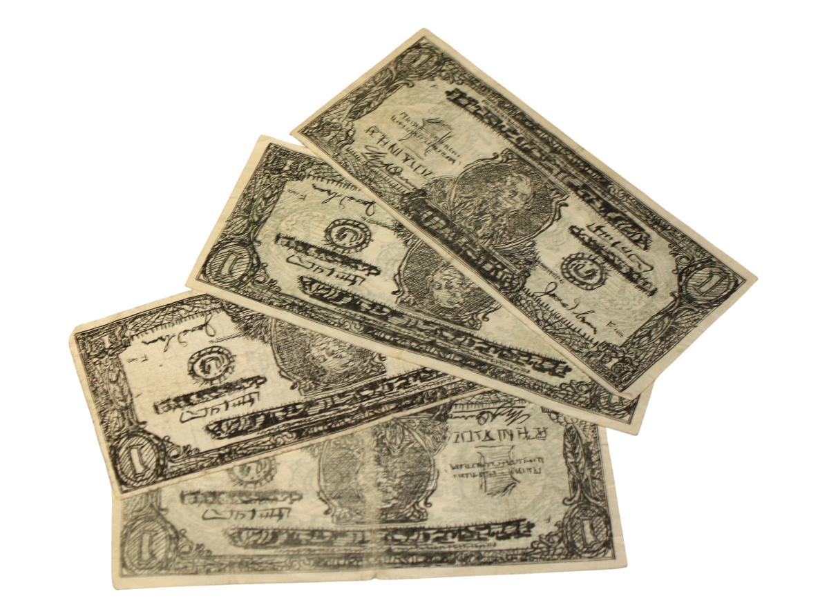 Fjögur eintök af eins dollara seðli.