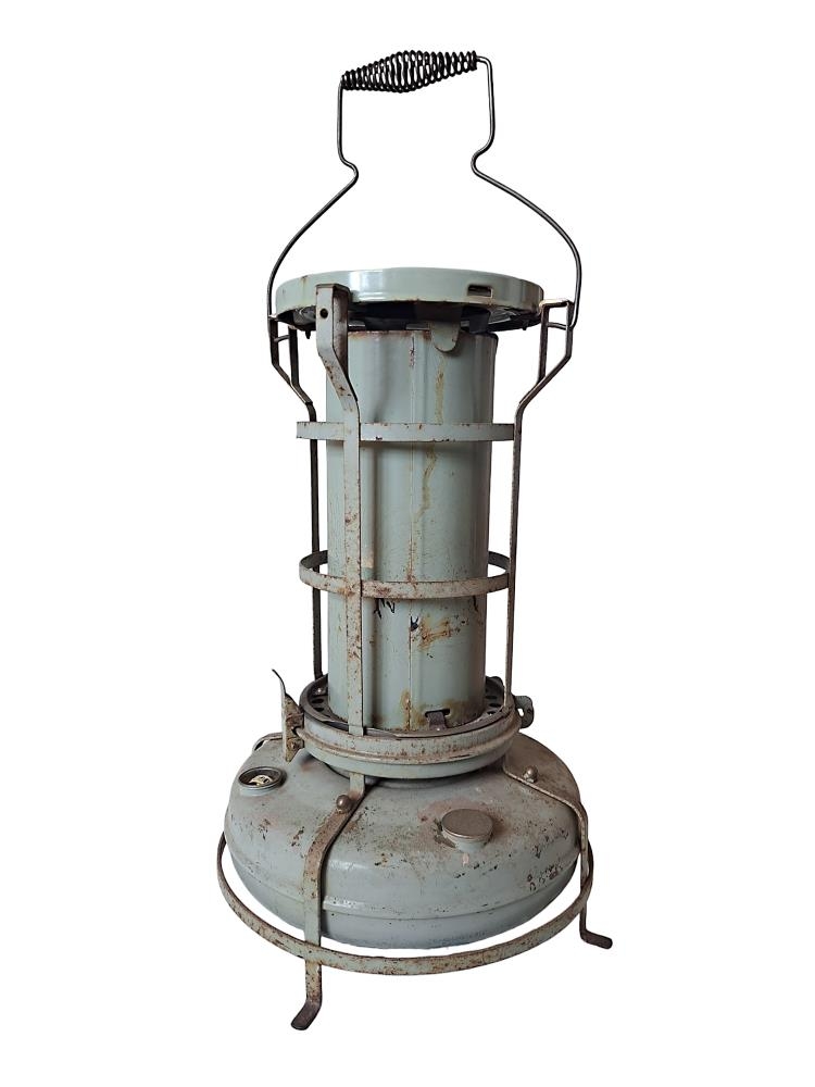 Olíuofn þessi var áður í eigu Árna Böðvarssonar ljósm. og sparisjóðsstjóra Akranesi(f.1888,d.1977) .Stærð :H.53 sm og Þv.28 sm.Lampinn er Aladdin Blue flame olíuofn, ljósgrænn og er vel með frann.Er hugsanlega frá 1940-1945.