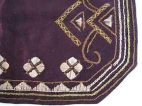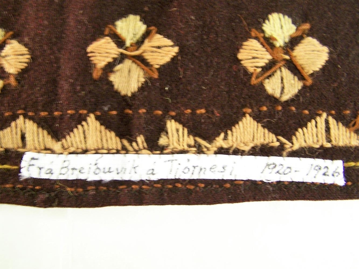 Gjafabréf með eftirfarandi texta fylgdi: Ofinn og útsaumaður dúkur frá Breiðuvík á Tjörnesi sem Benedikt Benediktsson (1857-1947) óf úr ullarbandi sem kona hans Þorbjörg Jónsdóttir spann og jurtalitaði. Sennilega saumaður í Breiðuvík af Ingibjörgu Benediktsdóttur síðar húsmóður og saumakona á Akureyri á árunum 1918-1926. Kemur úr dánarbúi Ingibjargar Benediktsdóttur (1900-1988).