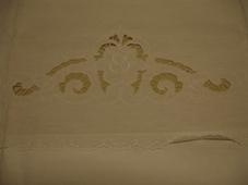með hvítsaumi. Að neðan er verinu lokað með bendlaböndum.