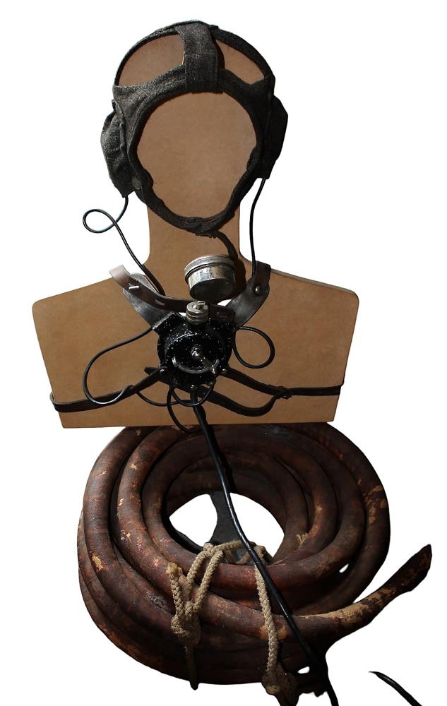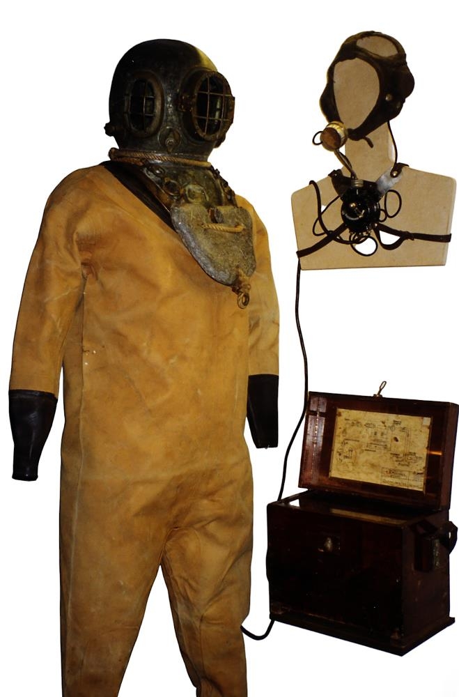 Dykkertelefon- Kafarasími í trékassa. Framleiddur í mars 1941 af INGENÖRFIRMEAT M.P.REDERSEN í kaupmannahöfn.