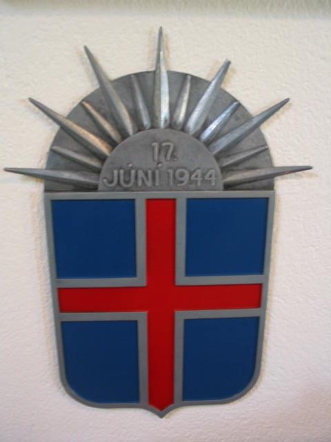 lýðveldis. Stefán Jónsson arkitekt teiknaði skjöldinn eftir fyrirsögn framkvæmdarnefndar
