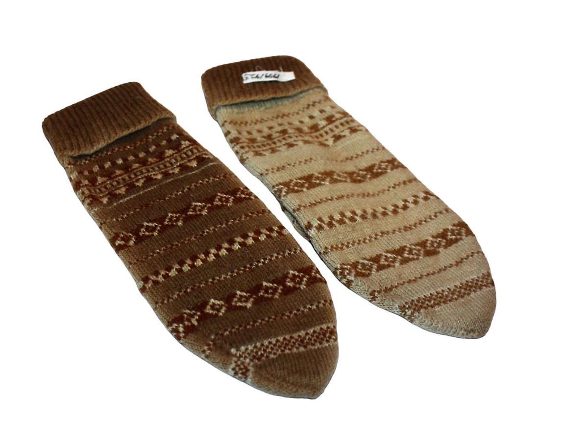 Kvenvettlingar ,sumt af bandinu í vettlingunum er mosalitað,þ.e.a.s. það sem ekki er í sauðalitunum. Vettlingana vann að öllu leyti Málfríður Hjaltadóttir ,húsfreyja á Högnastöðum í Þverárhlíð (f.14.11.1863) var hún þá 82 ára gömul (d.1946). Þórdís Sigurbjörnsdóttir ,dóttir Málfríðar ,húsfreyja á Kistufelli í Lundarreykjadal en síðar á Akranesi, gaf byggðasafninu vettlingana í janúar 1970.