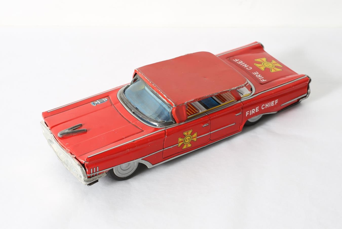 Leikfangabíll, rauð drossía merkt "Fire Chief". Er úr járni eða áli og er alveg heill. Kom úr dánarbúi Rósu og Metúsalems en börn þeirra höfðu leikið sér með þetta.
