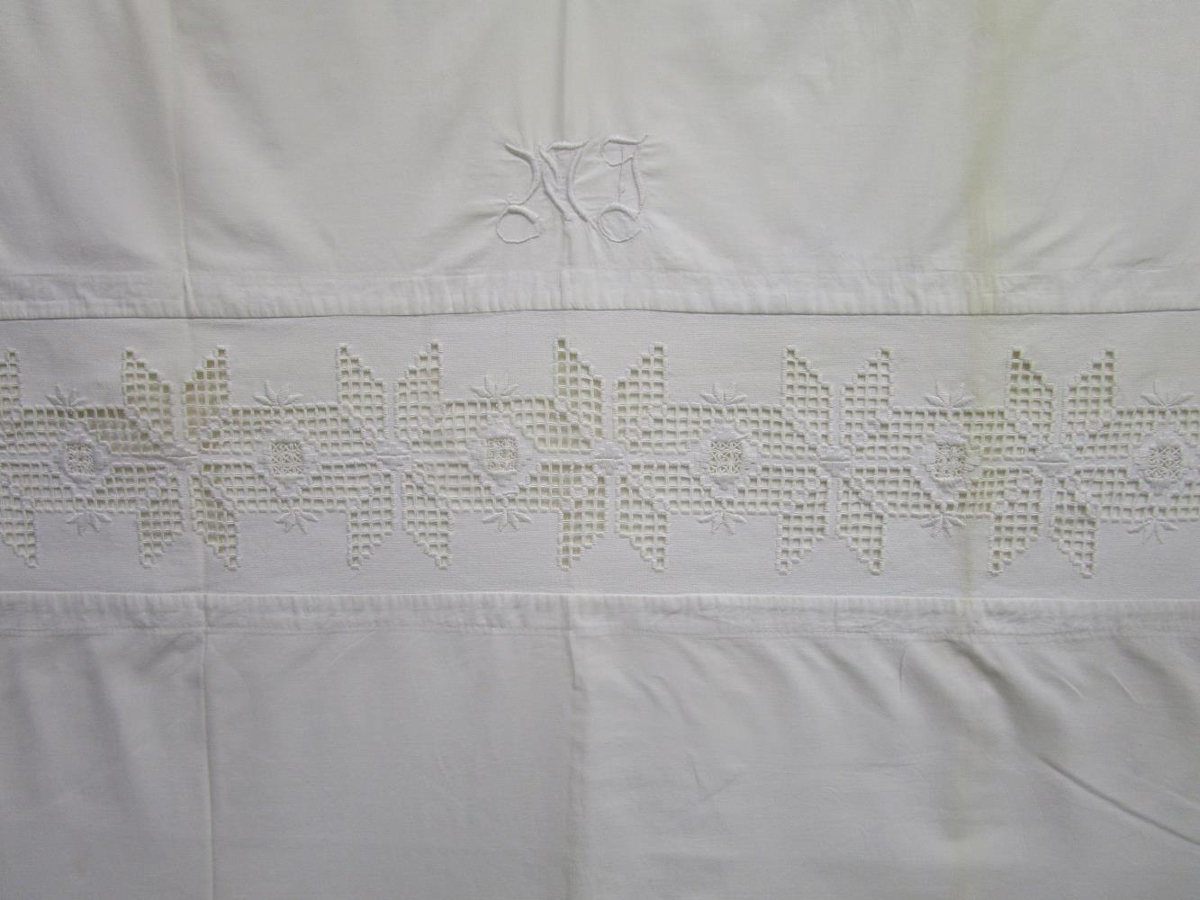 Sængurver með milliverki sem saumað er með harðangurs- og klaustursaumi. Fangamarkið M J er saumað með flatsaumi sem fyllt er undir. Matthildur Jóhannesdóttir húsfreyja á Hofstöðum í Miklaholtshreppi á Snæfellsnesi saumaði.Hún var mikil hannyrðakona, nam saumaskap snemma á ævinni og eftir hana liggur margvísleg handavinna.