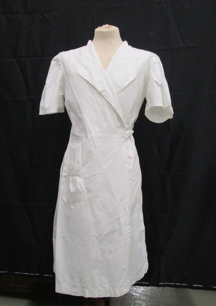 Hvítur sloppur sem notaður var á húsmæðraskólanum að Staðarfelli í Dölum árið 1943-1944. Eigandi og notandi sloppsins var Áslaug Sigurðardóttir frá Hofstöðum í Miklaholtshreppi á Snæfellsnesi. Hún saumaði sloppinn sjálf og var hann einskonar skólabúningur og vinnuklæðnaður námsmeyja. Sloppurinn er úr hvítu bómullarefni, stutterma með einum vasa og bundinn í mittið.