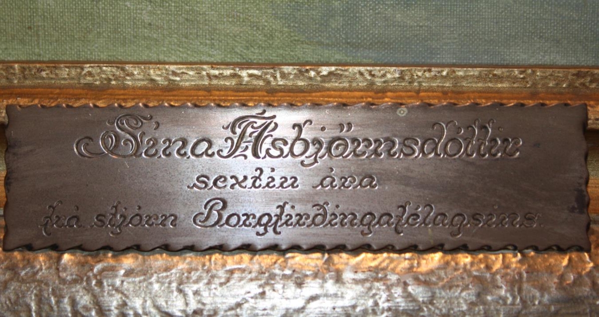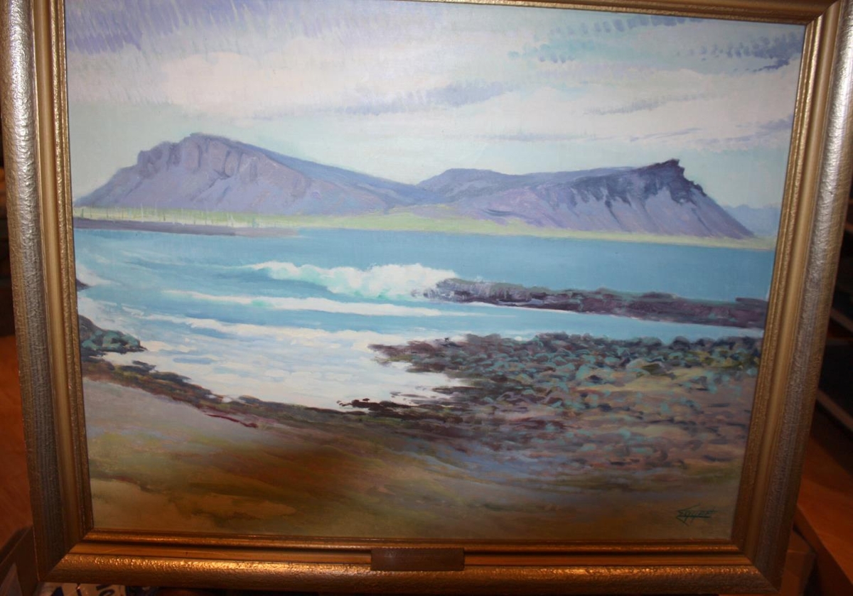 listmálara Myndin sýnir Akrafjall. Á silfurskjöld er grafið Sína Ásbjörnsdóttir