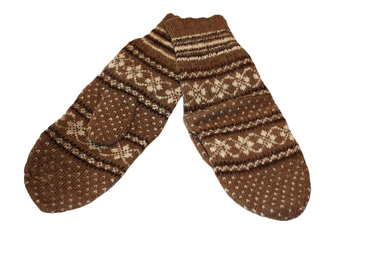 Vettlingar ,Ólöf Elíasdóttir frá Stóru-Fellsöxl prjónaði vettlingana úr hanspunnu þelbandi.Eru með munstri.Prjónaðir á 7.áratug 20.aldar. Gefandi Gerður Hjörleifsdóttir ,Þórsgötu 23 23,Reykjavík.