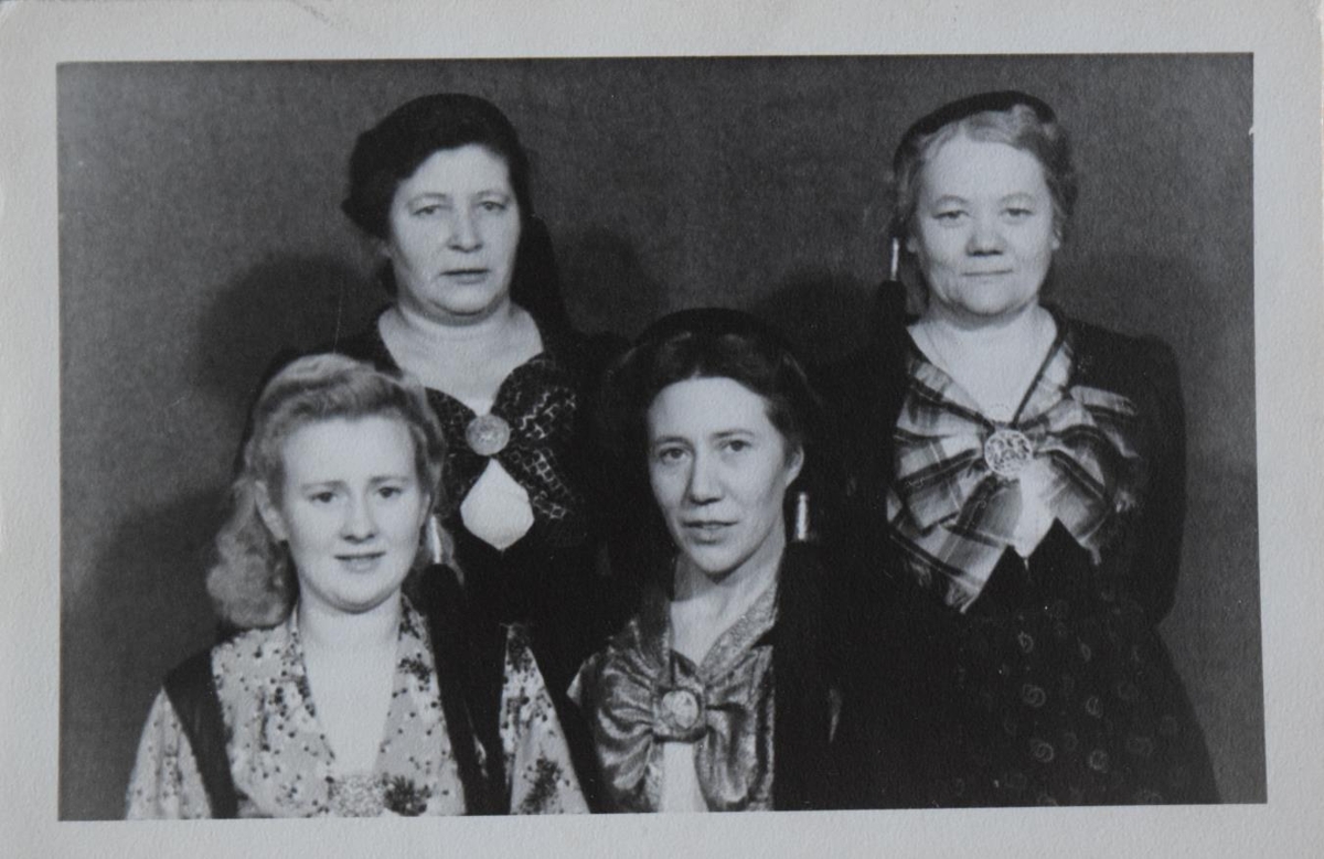 Neðri röð frá vinstri. Anna Björnsdóttir (1921-2014) vefnaðarkennari og Dagrún Kristjánsdóttir (1921-1997) húsmæðrakennari.