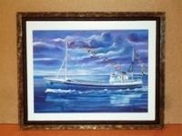 Myndin er fest á hvítan grunn. Hún sjálf er 67,5 x 49 cm að stærð. Í einu