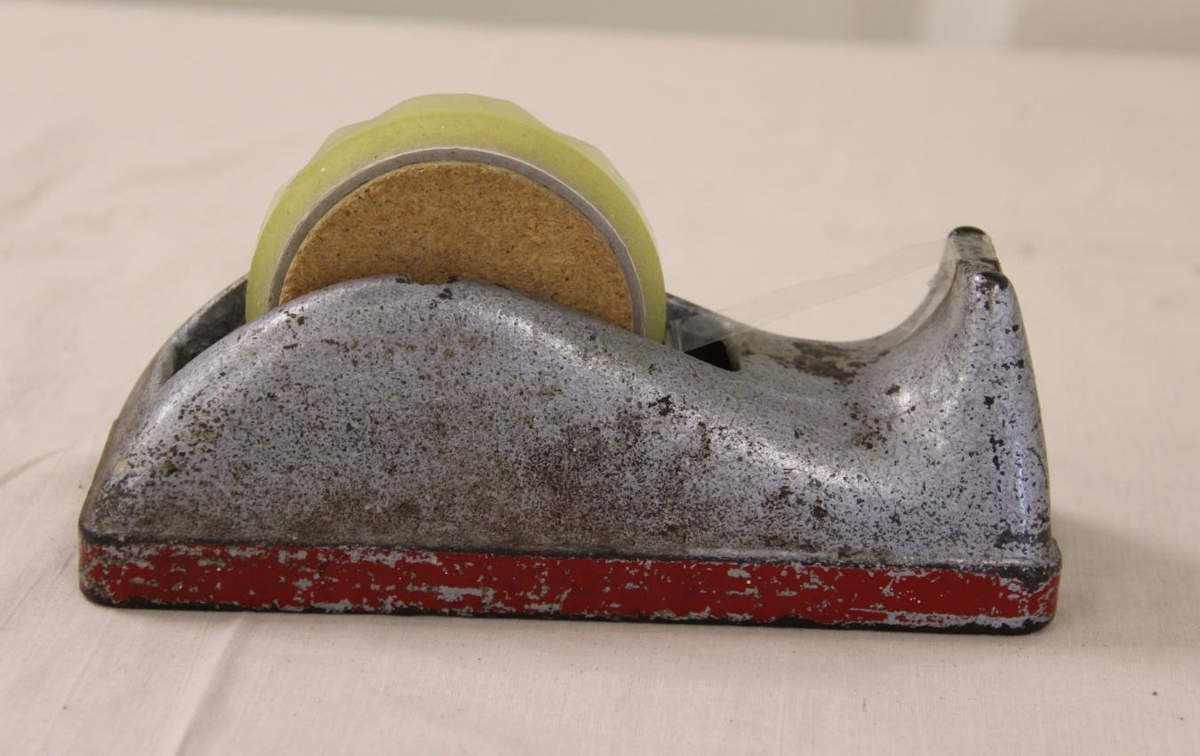 Límbandsstatífið er grátt með rauðri rönd neðst. Hjólið fyrir límbandsrúlluna er úr tré. Statífið er mjög þungt. Það var í notkun hjá Bústólpa á Akureyri.