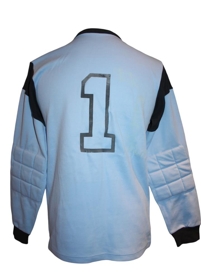 með ermapúðum á báðum ermum .Ljósblá með svörtum kraga ,síðerma ., Nr.1.