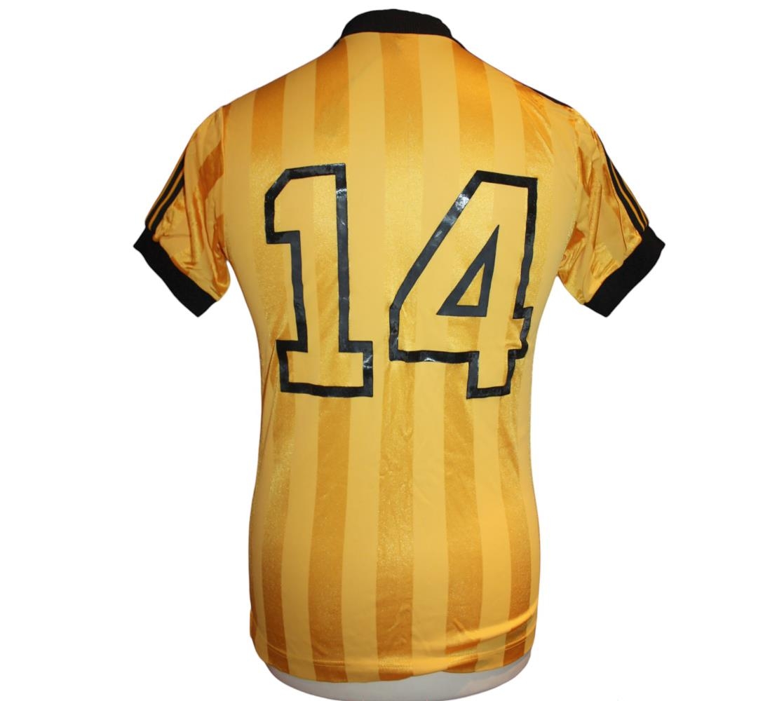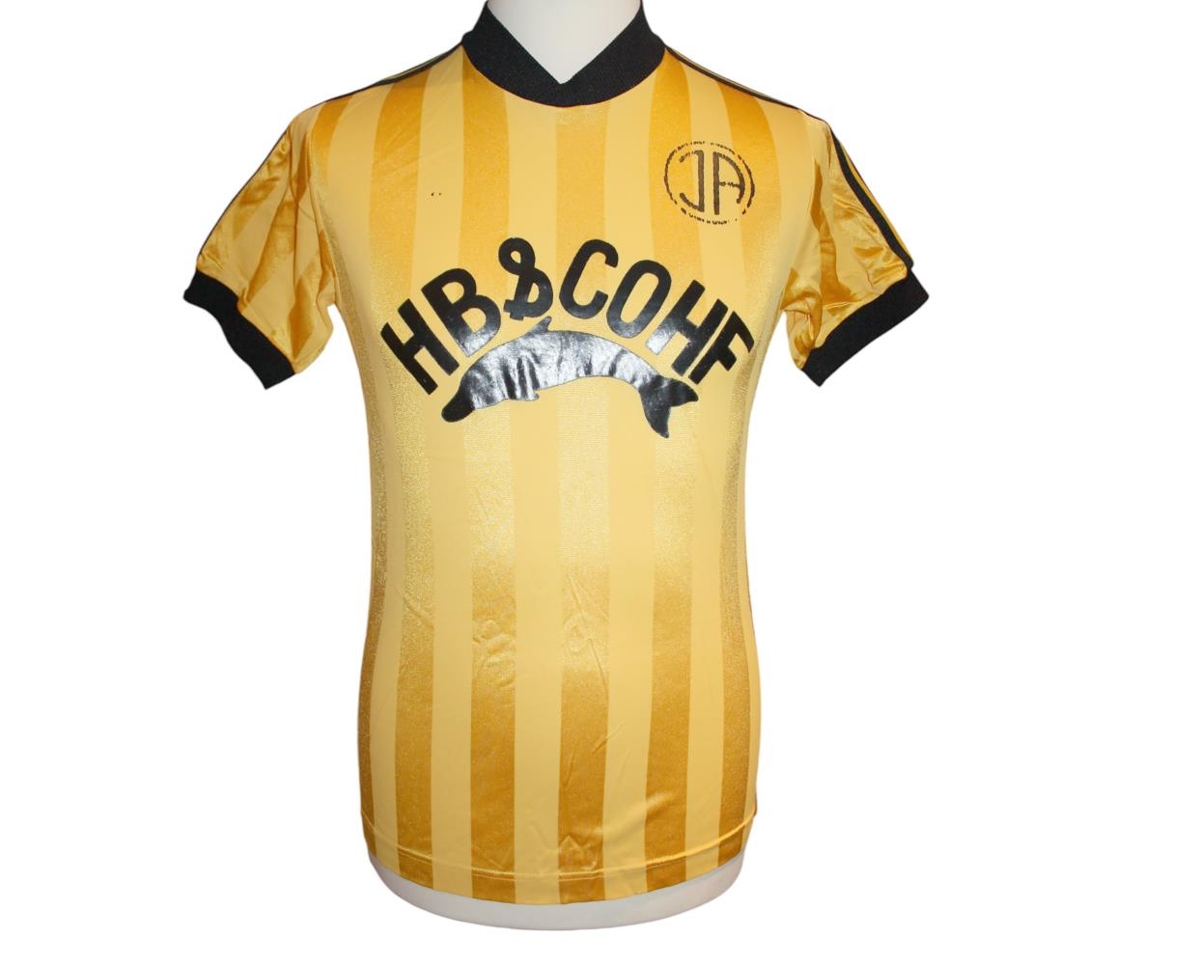 ÍA-handboltapeysa ,gul með 4 svörtum ermaröndum,stutterma, Nr.14.Augl.frá HB&CO framan á peysunni ásamt ÍA merki .Notað í kringum 1988 ,framleidd af HENSON fata verksm. Íslandi,GEF.ÍA