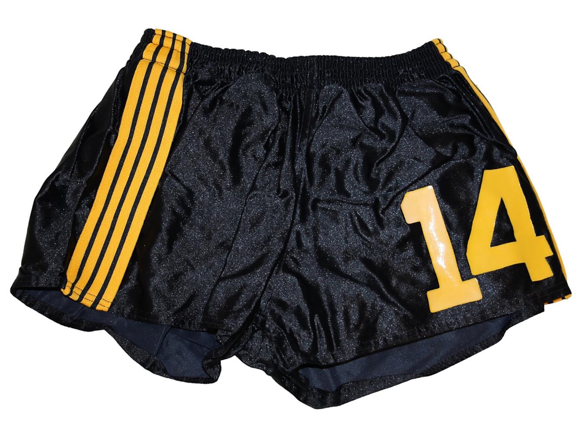 .Buxurnar eru svartar með gulum hliðarröndum beggja megin.Merktar nr.14