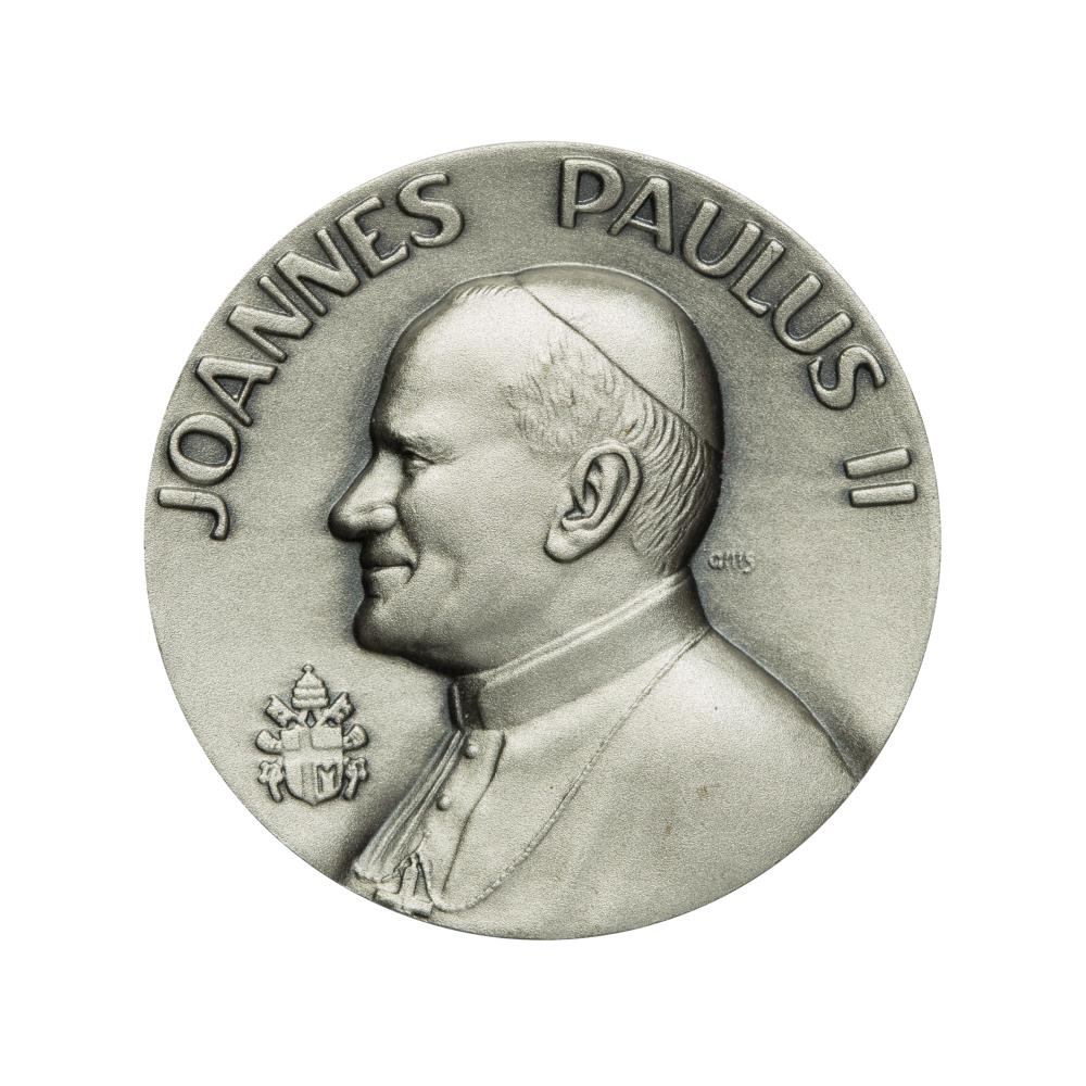 Þessi minnispeningur var búinn til af Sænska fyrirtækinu Sporrong AB í tilefni af heimsókn Jóhannesar Páls páfa II til Norðurlandanna.