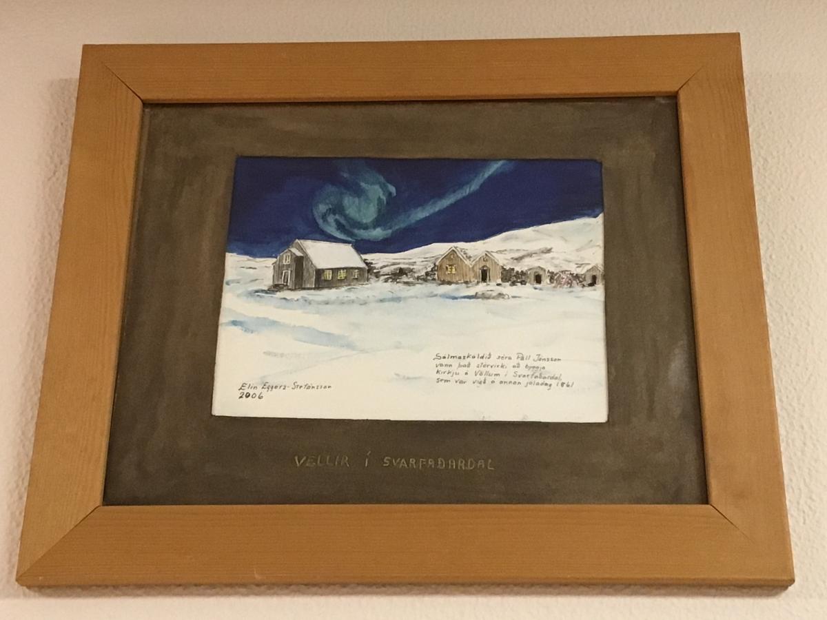 SVARFAÐARDAL". Myndin er innrömmuð í ljósan viðarramma og gler